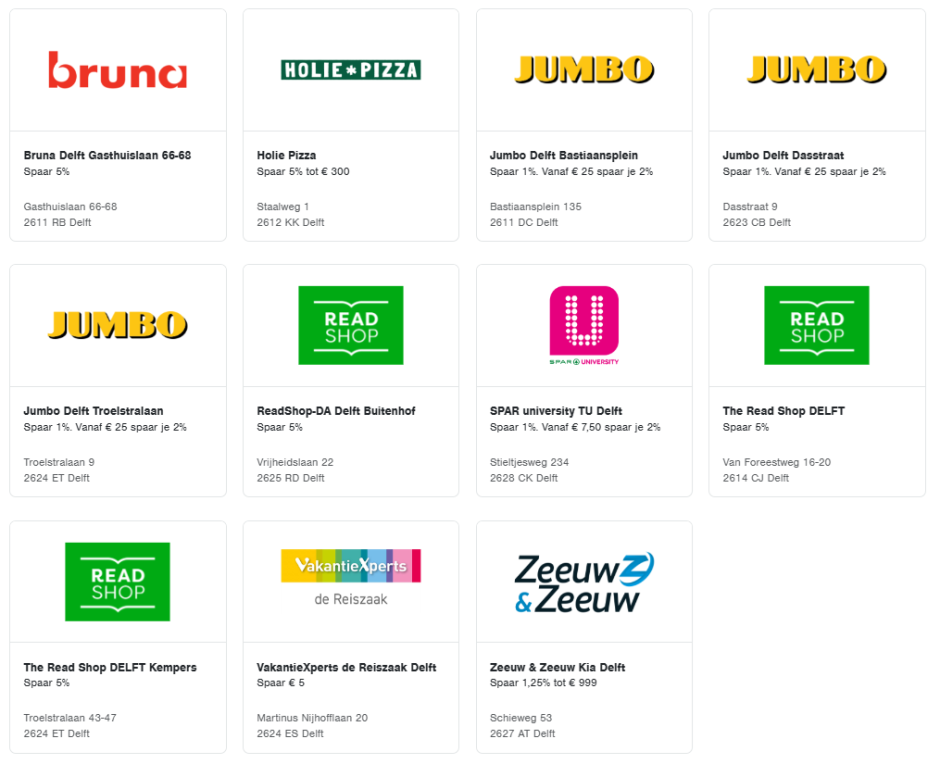 Na je eerste besteding bij een Dappre netwerkpartner ontvangen we beiden € 1,50. Hieronder overzicht van huidige partners in Delft.