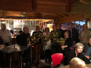Het hoogtepunt van 2019 was ons lustrum en daarom vraag ik de leden van de lustrumcommissie om naar voren te komen: Jeanne Oe, Annet Soer, Peter Buitendijk, Marja Meijers, Arie Mol, Paula Immers.